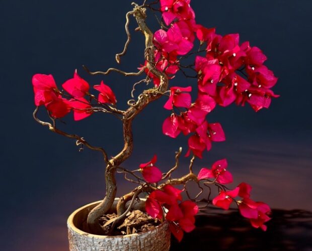Bonsai Bougainvillea op houten tak – in Bonsai Schaal – Brons Goud
