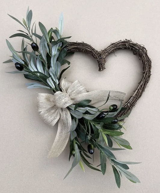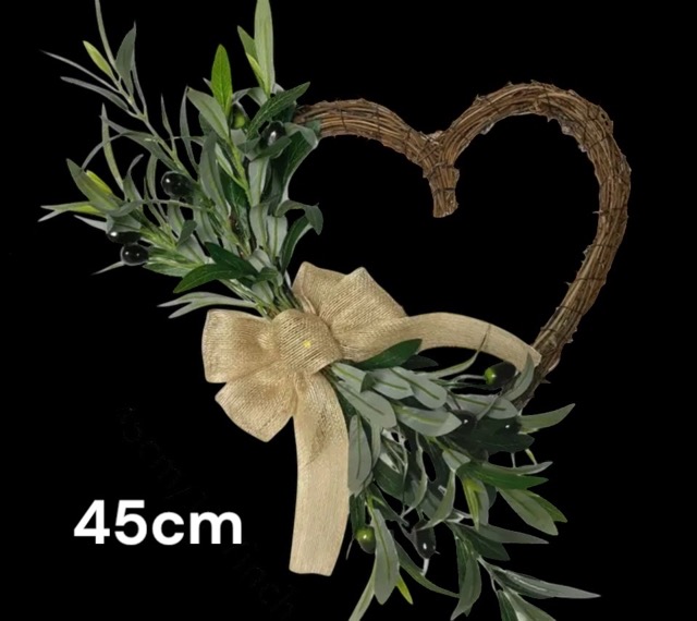 Kunstbloemen – Hartvormig – olijftakken – Krans – 45cm