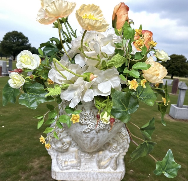 Duurzaam gedenkstuk met engelen en zachte kunstbloemen – een stijlvolle manier om liefde en herinnering levend te houden